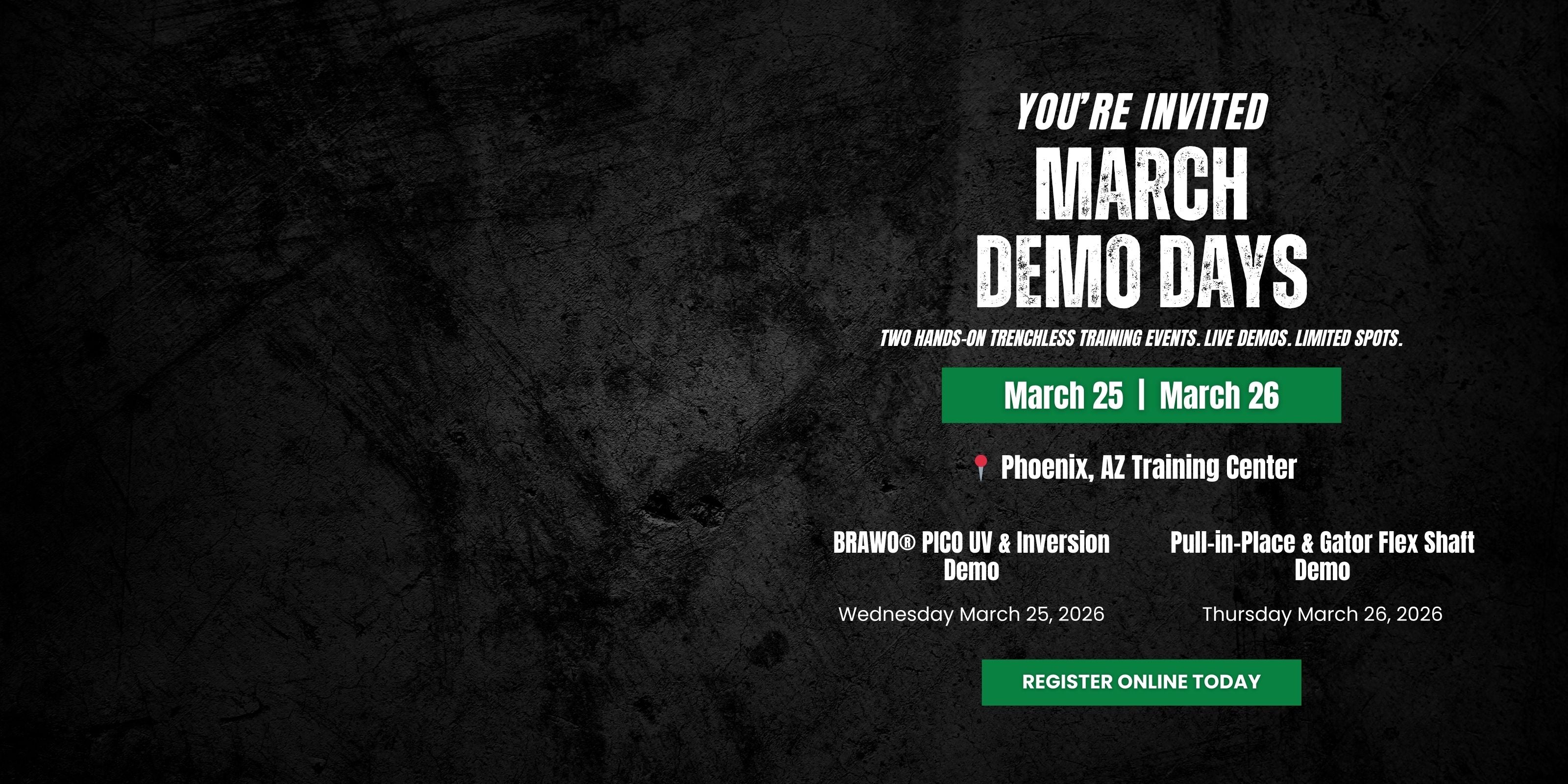Two hands-on trenchless training events. Live demos. Limited spots.